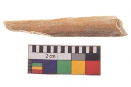 | Description / विवरण | Specimen of bone point with conical body and circular in cross section. It is creamish in colour. |
