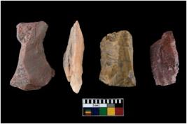 | Description / विवरण | There are n-4 of intact utilized flake cores made up of Chert. Some of them have bulge of percussion, some are flat flakes and few are retouched. |