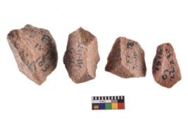 | Description / विवरण | A specimen of flake tool with prominent flaking marks. It made up of a short flakes with sides trimmed. It is rectangular in shaped. |