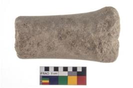 | Description / विवरण | A partially broken specimen of a pounder with rough surface , it is made of sandstone , it is oval in shape and rectangular in section. |