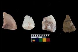 | Description / विवरण | There are n-4 of intact utilized flake cores made up of Chert. Some of them have bulge of percussion, some are flat flakes and few are retouched. |