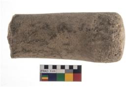 | Description / विवरण | A partially broken specimen of a pestle with rough surface , it is made of sandstone , it is oval in shape and rectangular in section. |