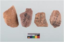 | Description / विवरण | Four worked utilised flakes with sharp edges.Many a times they are pointed at one end. |