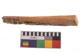 | Description / विवरण | Specimen of bone point with conical body and circular in cross section. It is creamish in colour. |