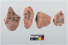 | Description / विवरण | Four worked utilised flakes with sharp edges.Many a times they are pointed at one end. |