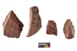 | Description / विवरण | A specimen of flake tool with prominent flaking marks. It made up of a short flakes with sides trimmed. It is rectangular in shaped. |