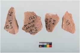 | Description / विवरण | Four worked utilised flakes with sharp edges.Many a times they are pointed at one end. |