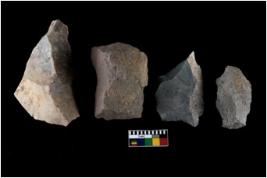 | Description / विवरण | There are n-4 of intact utilized flake cores made up of Chert. Some of them have bulge of percussion, some are flat flakes and few are retouched. |