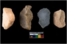 | Description / विवरण | There are n-4 of intact utilized flake cores made up of Chert. Some of them have bulge of percussion, some are flat flakes and few are retouched. |