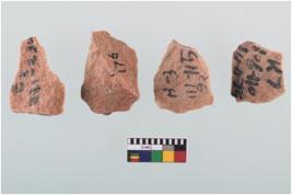 | Description / विवरण | Four worked utilised flakes with sharp edges.Many a times they are pointed at one end. |