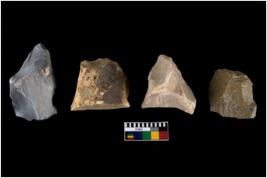 | Description / विवरण | There are n-4 of intact utilized flake cores made up of Chert. Some of them have bulge of percussion, some are flat flakes and few are retouched. |