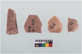 | Description / विवरण | Four worked utilised flakes with sharp edges.Many a times they are pointed at one end. |