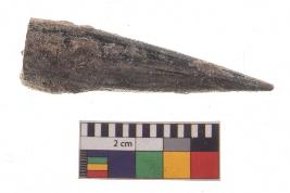 | Description / विवरण | Specimen of bone point with conical body and circular in cross section. It is blackish in colour. |