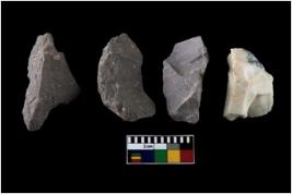 | Description / विवरण | There are n-4 of intact utilized flake cores made up of Chert. Some of them have bulge of percussion, some are flat flakes and few are retouched. |