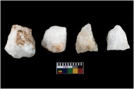 | Description / विवरण | Specimen of a fluted cores having several broad fluted marks indicating the detached blades from it. |