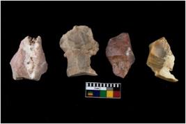 | Description / विवरण | There are n-4 of intact utilized flake cores made up of Chert. Some of them have bulge of percussion, some are flat flakes and few are retouched. |