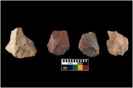 | Description / विवरण | There are n-4 of intact utilized flake cores made up of Chert. Some of them have bulge of percussion, some are flat flakes and few are retouched. |