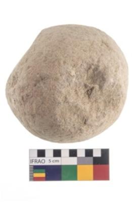 | Description / विवरण | A partially broken specimen of a hammer stone, It is made of sandstone it is roughly cirular in shape, it is with battering marks. |