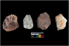 | Description / विवरण | There are n-4 of intact utilized flake cores made up of Chert. Some of them have bulge of percussion, some are flat flakes and few are retouched. |