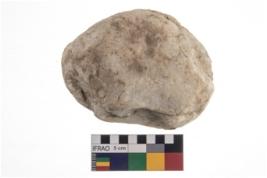 | Description / विवरण | A partially broken specimen of a hammer stone, with rough surface It is made of sandstone it is roughly rectangular in shape, it is with battering marks. |