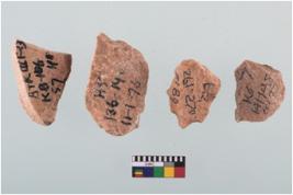 | Description / विवरण | Four worked utilised flakes with sharp edges.Many a times they are pointed at one end. |