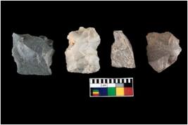 | Description / विवरण | There are n-4 of intact utilized flake cores made up of Chert. Some of them have bulge of percussion, some are flat flakes and few are retouched. |