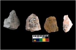 | Description / विवरण | There are n-4 of intact utilized flake cores made up of Chert. Some of them have bulge of percussion, some are flat flakes and few are retouched. |