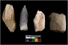 | Description / विवरण | There are n-4 of intact utilized flake cores made up of Chert. Some of them have bulge of percussion, some are flat flakes and few are retouched. |