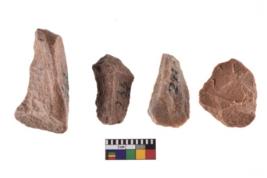 | Description / विवरण | A specimen of flake tool with prominent flaking marks. It made up of a short flakes with sides trimmed. It is rectangular in shaped. |