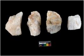 | Description / विवरण | Specimen of a fluted cores having several broad fluted marks indicating the detached blades from it. |