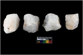 | Description / विवरण | Specimen of a fluted cores having several broad fluted marks indicating the detached blades from it. |
