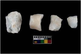 | Description / विवरण | There are n- 4 object , All are quartz and two are sharp.They are in average working condition, two of the core have coarse base. One of them looks like trapeze in shape.There are signs of damages. |