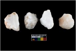 | Description / विवरण | Specimen of a fluted cores having several broad fluted marks indicating the detached blades from it. |