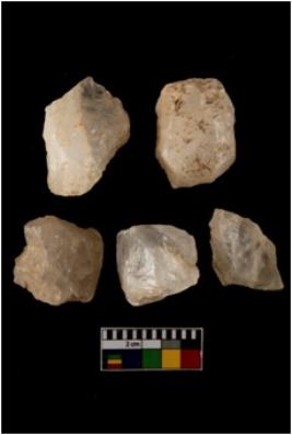 | Description / विवरण | There are n-5 of cores. All are made up of Quartz. All of them are intact fully fluted cores without any trace of crested ridge flakes. |