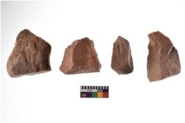 | Description / विवरण | A specimen of flake tool with prominent flaking marks. It made up of a short flakes with sides trimmed. It is rectangular in shaped. |