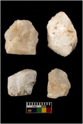 | Description / विवरण | There are n-4 of cores. All are made up of Quartz. All of them are intact fully fluted cores without any trace of crested ridge flakes. |