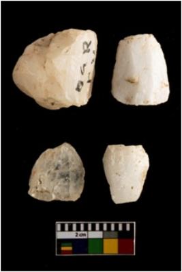 | Description / विवरण | There are n-4 of cores. All are made up of Quartz. All of them are intact fully fluted cores without any trace of crested ridge flakes. |