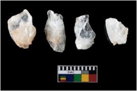 | Description / विवरण | Specimen of a fluted cores having several broad fluted marks indicating the detached blades from it. |