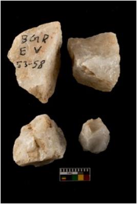 | Description / विवरण | There are n-4 of cores. All are made up of Quartz. All of them are intact fully fluted cores without any trace of crested ridge flakes. |