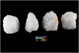 | Description / विवरण | Specimen of a fluted cores having several broad fluted marks indicating the detached blades from it. |