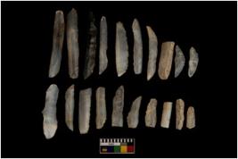 | Description / विवरण | There are 20 microlithic blades in all. All of them show signs of retouching. All are chalcedony |