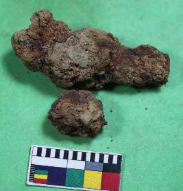 | Description / विवरण | Fragments of entirely incrusted part of nail with irregular shape having rough surface. |