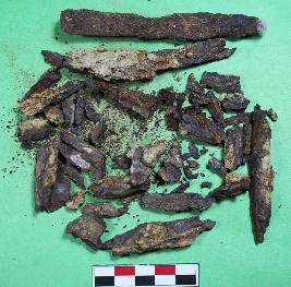 | Description / विवरण | Fragments of entirely incrusted part of object with irregular shape having rough surface. |