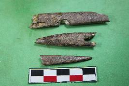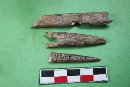 | Description / विवरण | Bone point broken into three pieces conical in shape. Its colour is brown and rough surface. B |