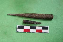 | Description / विवरण | Bone point broken into two pieces conical in shape. Its colour is brown and rough surface. |