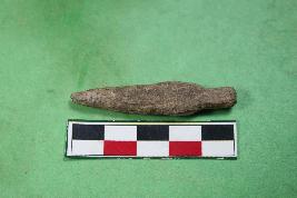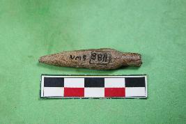 | Description / विवरण | An arrow-head having straight-stemmed shape. Slightly chipped-off surface. Its colour is light brown and surface is rough. q |