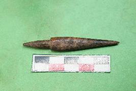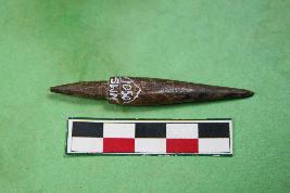 | Description / विवरण | An arrow-head having bi-cone shape. Slightly chipped-off surface. Its colour is light brown and surface is rough. |