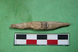 | Description / विवरण | A bone point having biconical shape with one pointed end. Its colour is ochre and rough surface. |
