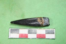 | Description / विवरण | A bone point having conical shape with one pointed end. Its colour is black and rough surface. |