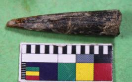 | Description / विवरण | A bone point having conical shape with one pointed end. Its colour is brown and rough surface. |